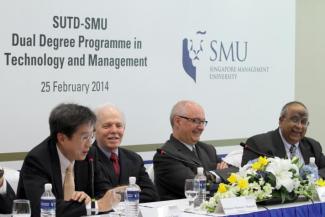 [Singapore, 25 February 2014 (Tuesday)] – This May, the Singapore University of Technology and Design (SUTD) and the Singapore Management University (SMU) will admit the first batch of dual degree undergraduate students. Up to 45 top achievers will have the unprecedented opportunity to pursue an engineering degree from SUTD and a business management degree from SMU concurrently. The four-year programme, aimed at producing graduates who will be highly effective in an increasingly complex globalised world, will prepare students to be technology and management-grounded leaders, innovators and entrepreneurs.