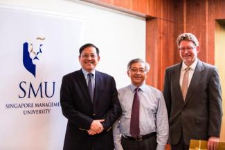 Photo: (left to right) Professor James T.H. Tang, Dean and Professor of Social Science, SMU; Mr Teo Chiang Long, Vice President of Ngee Ann Kongsi and Executive Director of Ngee Ann Development Pte Ltd; and Professor Paul Evans, Professor of Asian and Trans-Pacific International Relations at the Liu Institute for Global Issues, University of British Columbia and Visiting Professor of Asian and International Affairs at SMU.