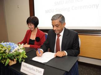 The MOU signing ceremony held today at SMU was represented by signatories: Captain Subhangshu Dutt, Chairman, ICS Singapore Committee; and Associate Professor Annie Koh, SMU’s Vice President, Business Development and External Relations, and Academic Director of SMU International Trading Institute (ITI@SMU).