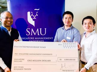 Two alumni who graduated from SMU Lee Kong Chian School of Business (LKCSB) in 2013 – Jeff Tung Chi Fung and Benjamin Twoon Wai Mun – have come together to set up a $1 million P.A.K. Entrepreneurship Fund at LKCSB.