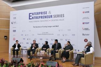 The fourth of a six-part Enterprise & Entrepreneur Series – Transforming Industries • Creating Value took place on 5 June 2018 (Tuesday) at the Singapore Management University’s Mochtar Riady Auditorium. Co-organised by The EDB Society and SMU, the forum tackled the topics of balancing longer life expectancies with quality of living.