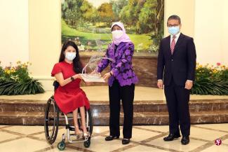 For her contributions to Singapore, SMU alumna and five-time Paralympic swimming champion Yip Pin Xiu was presented the inaugural President's Award for Inspiring Achievement yesterday (Feb 11). At the ceremony at the Istana, President Halimah Yacob said it was "only fitting" that Pin Xiu was the inaugural recipient of the award, and added, "During her tenure (as an NMP), Pin Xiu used her voice in Parliament to champion greater inclusivity in sports and raise awareness around the issue of sexual violence and harassment". Pin Xiu said, "I hope this award shows that it is not just about making big achievements in life, but also about being consistent in doing the smaller, easier tasks to get to where you want to be eventually". She hopes to encourage people to do what they are passionate about while trying to make a positive change.