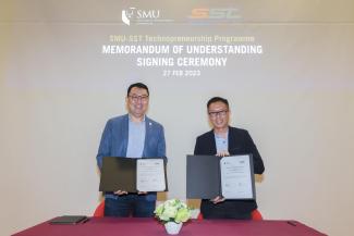 Singapore, 27 February 2023 (Monday) - SMU Academy, the professional training arm of Singapore Management University (SMU), and the School of Science and Technology, Singapore (SST) today signed a memorandum of understanding (MoU) to partner in a new SMU-SST Technopreneurship Programme, to be offered later this year to SST’s students. This is the first time SMU Academy is partnering with a local secondary school in its curriculum, a testament to SMU Academy’s commitment to supporting lifelong learning.