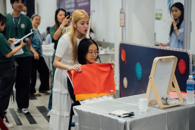 - Yim Siam’s Thai Herbal Compress station had visitors rolling herbs by hand. “It smelled so good — and it’s heatable!” laughed Brillien Kristiawan (Year 2, SOE, Indonesia).