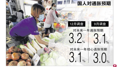 Survey: Singaporeans project headline inflation at 3.2% in the coming year, slightly higher than Sep numbers